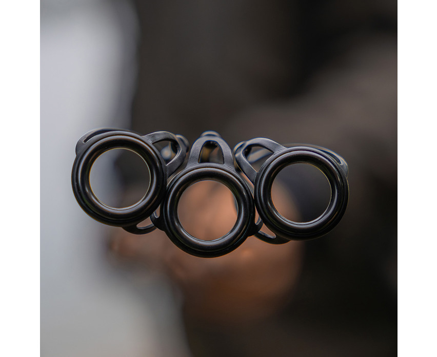 A bot American Tackle Ti-Forged Air gyűrűket kapott, amelyek könnyűek, tartósak és pontos zsinórlefutást garantálnak minden helyzetben. A 16 mm-es kerámiabetétes, anti-frap spiccgyűrű minimalizálja a zsinór rátekeredésének kockázatát, ami különösen fontos sötétben vagy hosszabb dobásoknál.