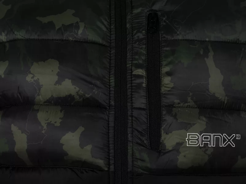 A kapucni összehúzó klipszes állíthatósága miatt jól illeszthető különböző időjárási helyzetekben, az ujjak rugalmas vége pedig kényelmesen követi a csukló formáját, így nem engedi be a hideg levegőt. A dzsekit a fekete alapszín és a különleges Delphin BANX terepminta teszi igazán egyedivé. A mintázat Európa híres tavai és folyói alapján készült, így valódi horgászidentitást hordoz.