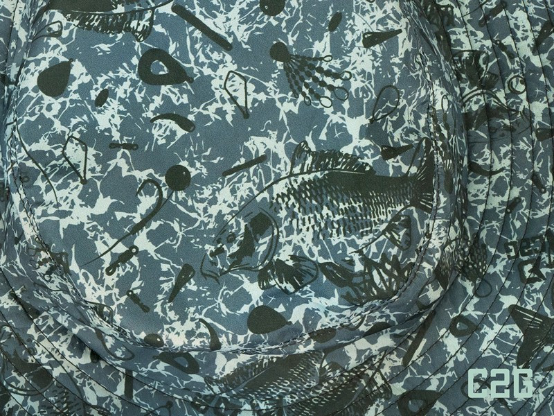 A kalap 100% nejlon anyagból készült, amely könnyű, strapabíró és gyorsan szárad, így megbízható viselet a legforróbb napokon is. A külső felület teljes egészében a Delphin szabadalmaztatott C2G mintázatával van ellátva, amelyet három zöld árnyalat, valamint rejtett hal- és szereléksziluettek tesznek igazán különlegessé.