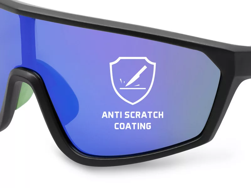 A matt fekete keretbe Blue Revo szűrővel ellátott lencsék kerültek. Ez a szűrő fokozza a kontrasztot és az élénk színeket, karcálló védelmet nyújt, javítja a lencsék optikai tulajdonságait és élettartamát. Emellett a Revo bevonat hidrofób és oleofób, vagyis taszítja a vizet és az olajat – így a napszemüveg könnyen tisztántartható. További előny: a lencsék mögött alig láthatóak a szemek – ez egy stílusos és praktikus részlet egyben. A sötét lencsék kiszűrik a káros UVA, UVB és UVC sugarakat, így teljeskörű védelmet nyújtanak. Legfontosabb tulajdonságuk azonban a polarizáció – hatékonyan szűrik ki a vízfelszínről visszaverődő vízszintes fényt, lehetővé téve, hogy tisztán lásd, mi történik a felszín alatt.