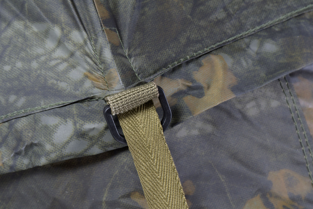 A borítás könnyű, mégis teljesen vízálló, gumírozott anyagból készült, ragasztott varrásokkal, így hatékony védelmet nyújt tartós esőben is. A modern, terepszínű (camo) megjelenés jól illeszkedik a természetes környezetbe.