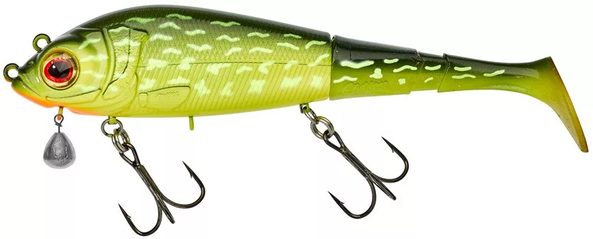 A csali egyedi kialakításának köszönhetően két különböző részből áll: egy masszív, kemény első testből és egy rugalmas, cserélhető gumifarokból. Ez a kombináció rendkívül élethű mozgást biztosít, amely egyszerre kelt erőteljes rezgéseket és természetes úszást a vízben.