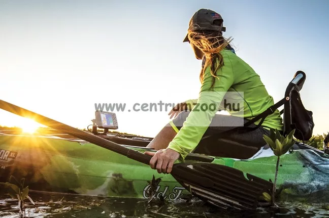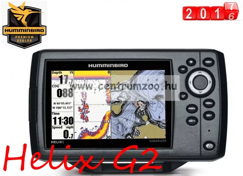 A nagy sikerű Helix sorozat megújult a 2017-es évre. Az új sorozat G2 névre keresztelték, azaz második generációs Helix sorozat. A Helix sorozat tudásán nem változtattak, csak a képernyőn (több színvilágot tud a G2 sorozat) és a készülék alkatrészein. 16:9 nyújtott képernyő aminek az átmérője 12,7 cm. Ezeken felül a Helix 5 G2 egy új jeladót kapott ami Chirp funkcióval is rendelkezik. A Chirp jeladó előnyei mély vízben jönnek elő. A Humminbird Chirp szonár egy olyan jeladó ami megerősíti a Humminbird halradar jeladó jeleit. Előnyei, hogy a jelek mélyebb vízmélységre is képesek eljutni és a vízalatti világról részletesebb élesebb és valós adatokat kap a felhasználó. Az SI, a Side Imaging rendszer rövidítése. Ez az SI rendszer egyértelműen áttekinthető, fotóminőségű képet nyújt a víz alatti világról és minden apró objektumról, amit emberi szemmel nem láthatunk. A Side Imaging képalkotó technológia kifejezetten széles, mindkét oldalra 70 méterre kiterjedő jeladósugárral dolgozik. A nagy, oldalra kiterjedő feltérképezhető területet pillanatok alatt át tudja pásztázni a Side Imaging rendszerű Helix 5 Chirp SI G2 Combo készülék, ami eddig nagy időt igényelt a régebbi típusú halradaroknál. Az Helix 5 Chirp SI G2 Combo készülék GPS vevővel is el van látva, hogy könnyebben visszataláljunk kedvenc horgászhelyünkre. A magas frekvencián működő jeladó úgy dolgozik, mint egy víz alatti kamera, de még a zavaros, nem tiszta víz sem befolyásolja a fotóminőségű képmegjelenítésben. A Side Imaging rendszerű szonár a hagyományos képmegjelenítésre továbbra is alkalmas. Egy jeladóval rendelkezik, amiben a két típusú jeladó egyben be van építve. Az eddigi halradaroknál megszokott ábrázolás helyett, a víz alatti akadókat, köveket, fákat, növényzetet sokkal könnyebben tudjuk beazonosítani. A SI-nél, azaz a fotóminőségű képalkotásnál a halat nem a megszokott módon, halpiktogramban jeleníti meg, hanem a valódi alakját hozza képre a jeladó. A horgászok számára az eddigieknél sokkal hatékonyabb halradar, mert a víz alatti világról részletes, szinte fotóminőségű kép segítségével könnyebben megismerhetik a víz alatti részleteket. A nagy felbontású, színes képalkotás és az TFT kijelző segítségével olyan képet kapunk, mintha egy Tv-t néznénk. A képernyőt többféle színvilágban lehet beállítani. A Helix 5 Chirp SI G2 Combo készülékben mindent megtalálunk, ami a hajózáshoz kell. Pontos vízmélység mérés, részletes képfelbontás és a GPS, ami vízitérkép szoftvert is képes kezelni. A GPS jelvevő-egység a képernyőben van elhelyezve. A Side Imaging szonár 172°-os lefedettséget biztosít. A Helix 5 Chirp SI G2 Combo halradar nem csak az SI oldal sugarú képet tudja megjeleníteni, hanem még a DI (Down Imaging) és a hagyományos régi haldara képet is. A készülék a pozitív halradar tulajdonságok mellett GPS-el is rendelkezik, ami vízitérképeket tud kezelni. Mindig visszatalál a kedvenc horgászhelyére. A Switch Fire szonár segítségével minden vízalatti vagy víz közötti tárgyat könnyedén megjelenít a Helix 5 G2 sonar halradar. Nagy sebességnél is tökéletes képet alkot. Igazi társa egy hajósnak vagy horgásznak.