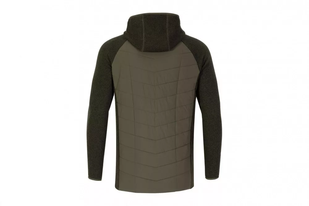 A karoknál, a két oldalsó részen és a kapucninál egy úgynevezett heavy-knit fleece anyagból készülnek. Ez nemcsak rendkívül kényelmessé és meleggé teszi a Hybrid Jacket-et, hanem a mozgáshoz szükséges rugalmasságot is megtartja.