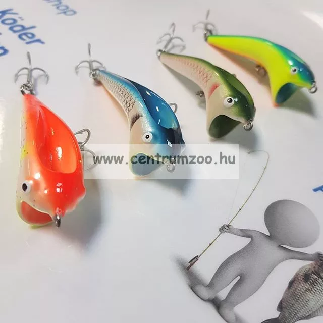 The plug imitates an alarmed little fish both in form and action. It serves both as a spinning lure and in trolling.