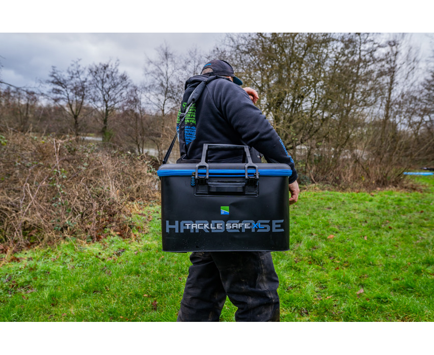 A Preston Hardcase Tackle Safe XL egy megnövelt méretű, rendkívül strapabíró és teljesen vízálló horgásztároló táska, amely a népszerű Tackle Safe sorozat nagyobb változata. Az XL kivitel hatalmas belső térfogatot kínál, így ideális választás azok számára, akik sok aprócikket, dobozt, szereléket, akár teljes method feeder szetteket szeretnének egyetlen, jól védett helyen szállítani.