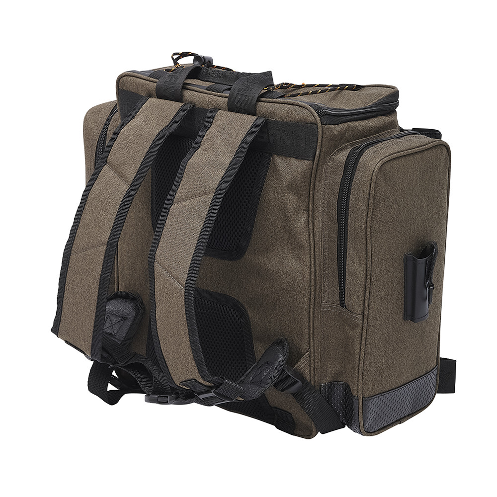 SPECIALIST RUCKSACK Tartsd kéznél az összes szükséges eszközödet ezzel a praktikus és sokoldalú hátizsákkal. A könnyen hozzáférhető elülső rekesz belül három csalisdobozzal van megtöltve, míg a felső fő rekesz összecsukható elválasztófallal rendelkezik, így a táska könnyen összenyitható egyetlen nagy rekesszé. Ideális csalistáska az olyan pergető horgászok számára, akik nagyobb távolságokat tesznek meg.