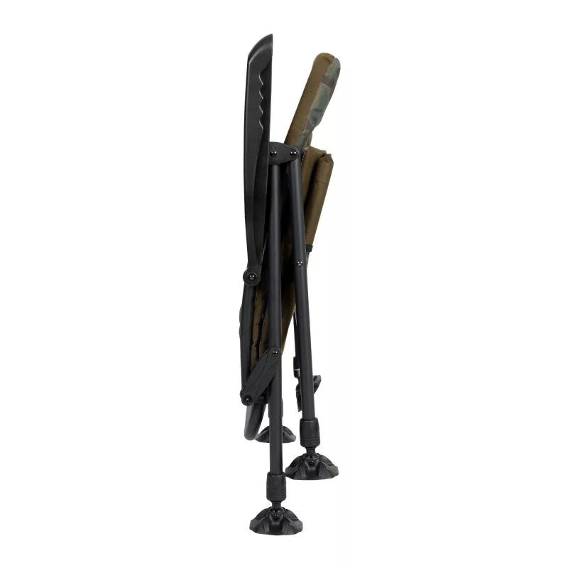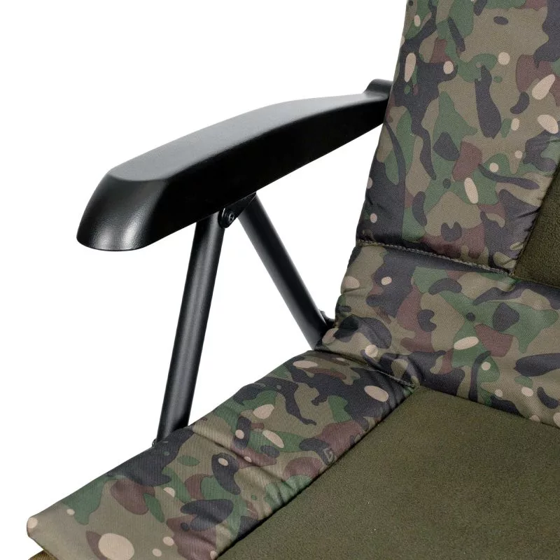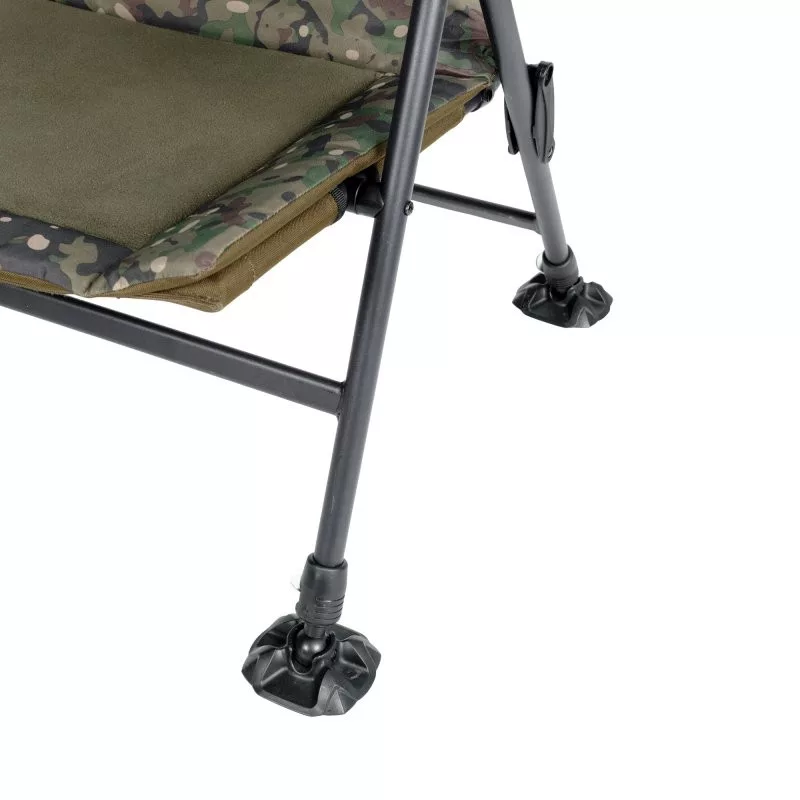 A négy állítható magasságú láb és a nagy méretű sártalpak biztosítják a stabil elhelyezést bármilyen talajon – akár egyenetlen vagy puha partoldalon is. A szék külső borítása a Trakker egyedi camo mintájával készült, amely diszkrét, mégis stílusos megjelenést ad a vízparton.