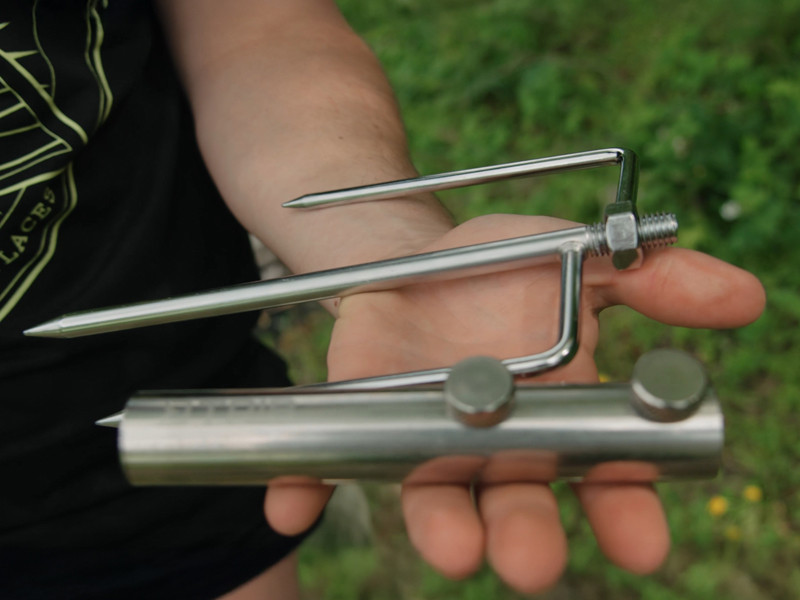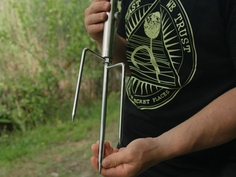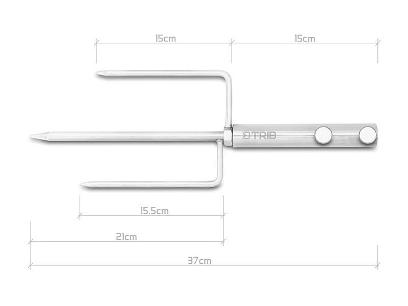 A három leszúrótüske tökéletes stabilitást nyújt, kialakításuknak köszönhetően pedig lábbal könnyen lenyomható, így kemény talajba is egyszerűen leszúrható. Az egyik tüske rögzítőanyával van ellátva, amely lehetővé teszi a megfelelő pozíció beállítását vagy annak teljes eltávolítását. A tüskék száma és elhelyezkedése testre szabható a talajhoz való leghatékonyabb rögzítés érdekében.