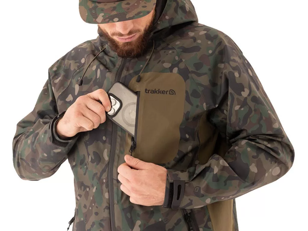 A kabát Trakker egyedi camo mintázattal készült, amely nemcsak funkcionális, hanem modern, igényes outdoor megjelenést is biztosít.