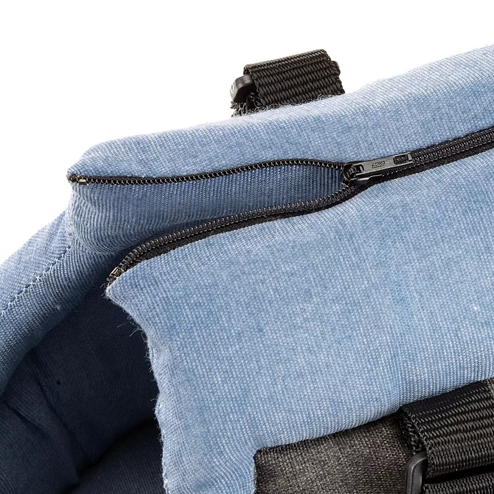 A belső párnázás és a biztonsági rögzítőpánt gondoskodik a kisállat kényelméről és biztonságáról. A cipzáras nyílás könnyű ki- és bejutást tesz lehetővé, az állítható vállpánt pedig alkalmazkodik a viselő magasságához és igényeihez. A táska anyaga kézzel mosható pamut, amely strapabíró, de kellemes tapintású és jól szellőzik.