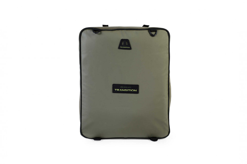 A táska tetején két tépőzáras rögzítőhurok található, amelyek ideálisak összecsukható merítőhálók, bankoszlopok vagy egyéb hosszú kiegészítők elhelyezésére. Emellett D-alakú rögzítőfüleket kapott, amelyekre karabinerekkel további eszközök akaszthatók. A modell kompatibilis az új Korum Transition leakasztószőnyegekkel is: az oldalsó Transition holster foglalatba ezeket egyszerűen bele lehet csúsztatni, így mindig kéznél vannak.